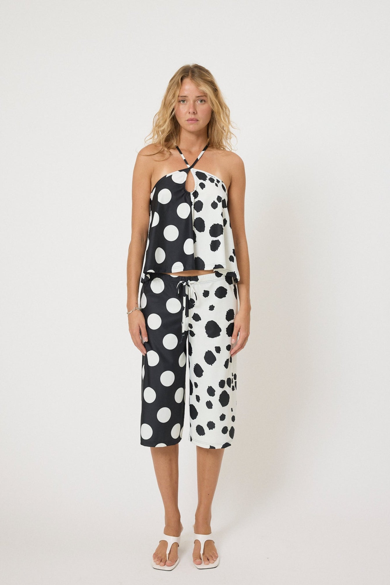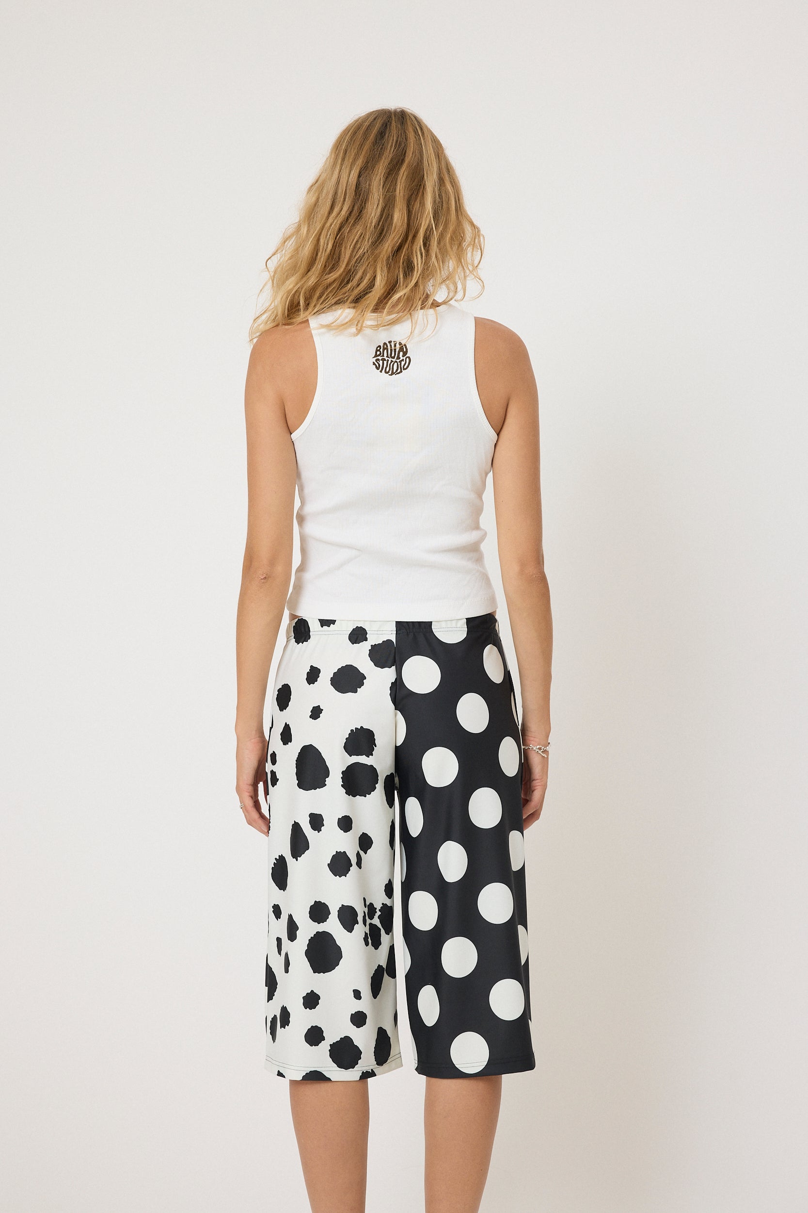 Our Billy Capris from the RODEO collection are a standout style, playing with bold black-and-white contrasts and playful polka dots. Featuring adjustable waist ties for a perfect fit.