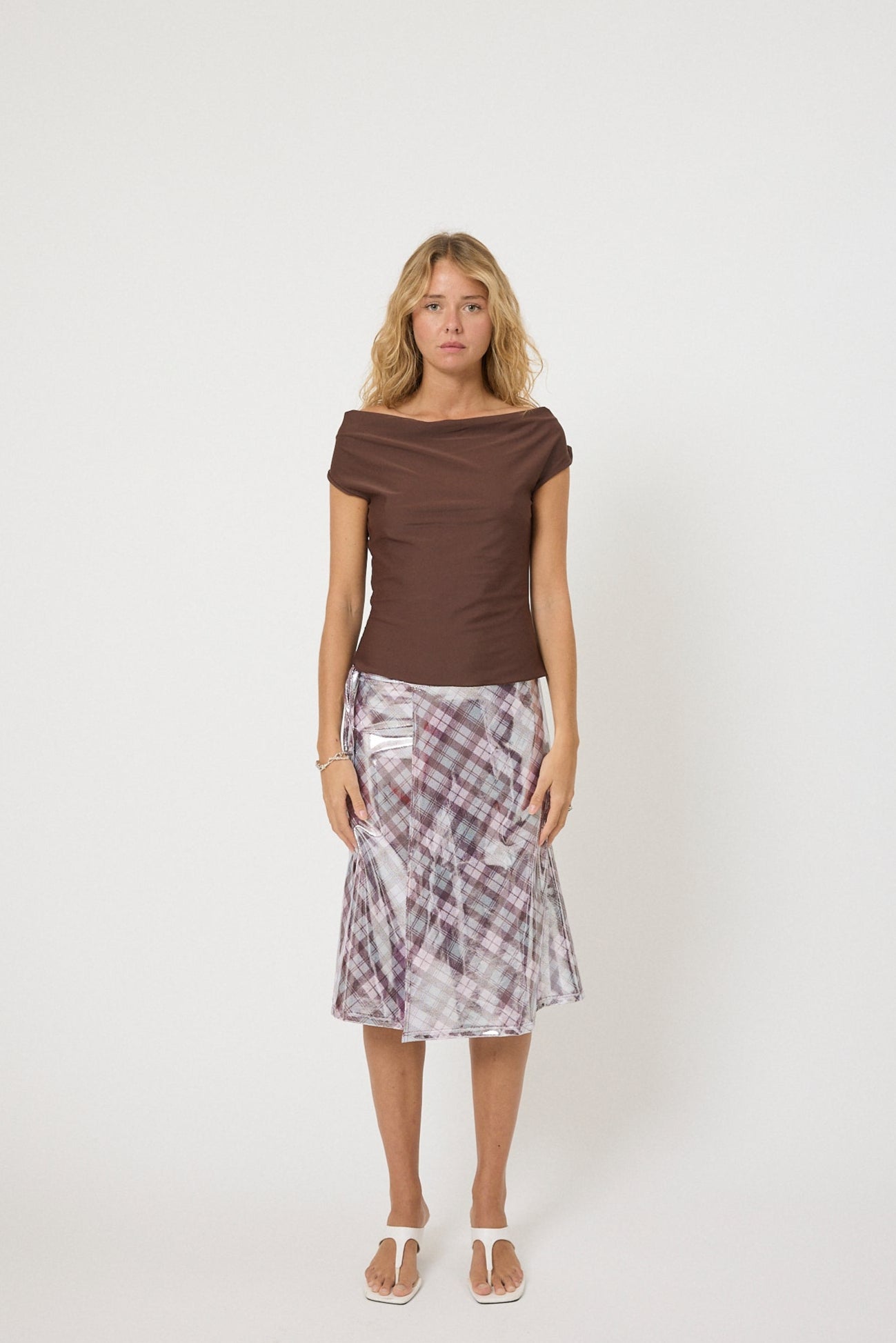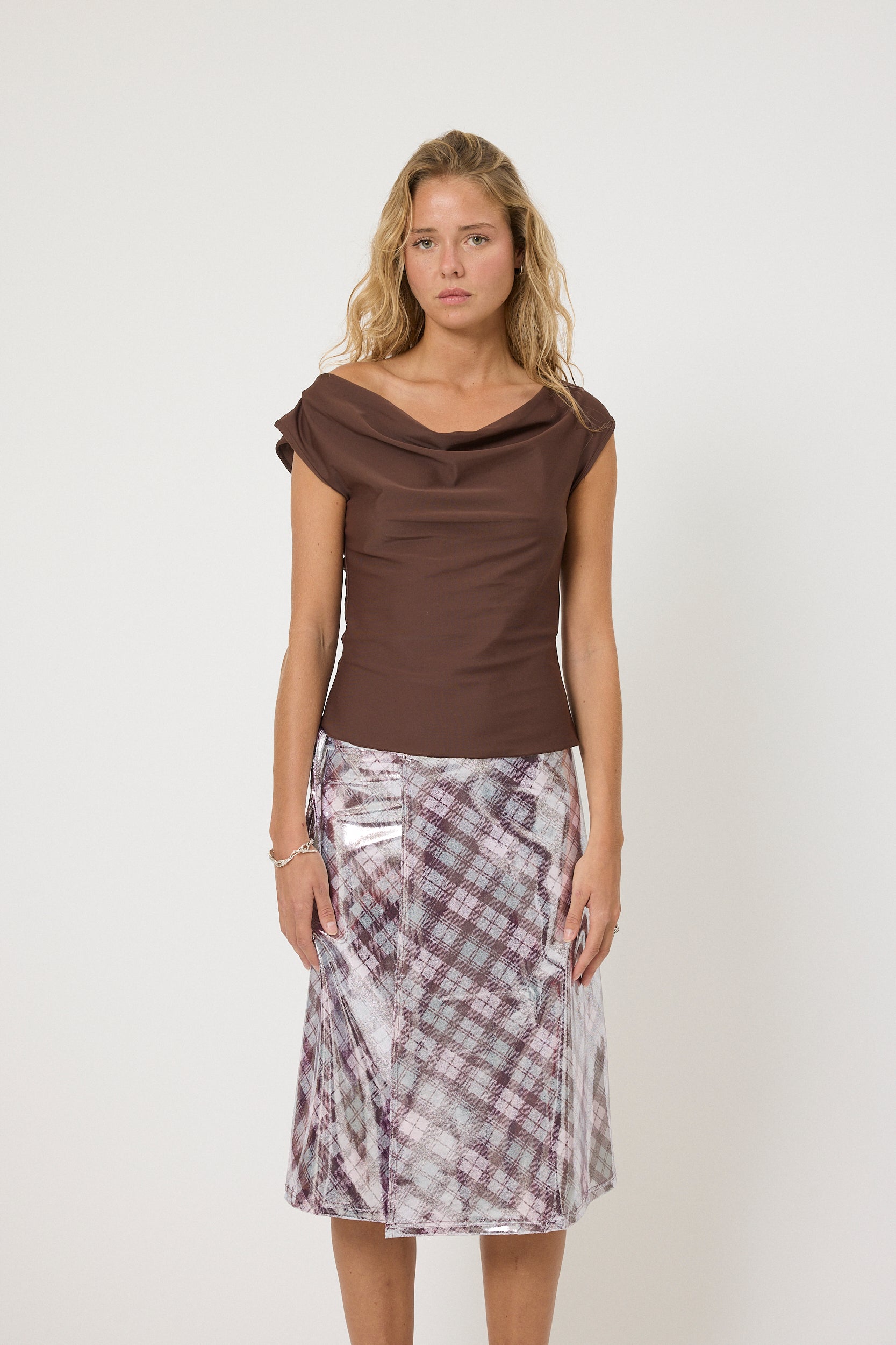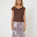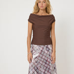 Our Bonnie draped top from our RODEO collection, crafted in classic brown for a versatile, western-ready style. Designed with a flattering drape, with back ties to adjust for a perfect fit.