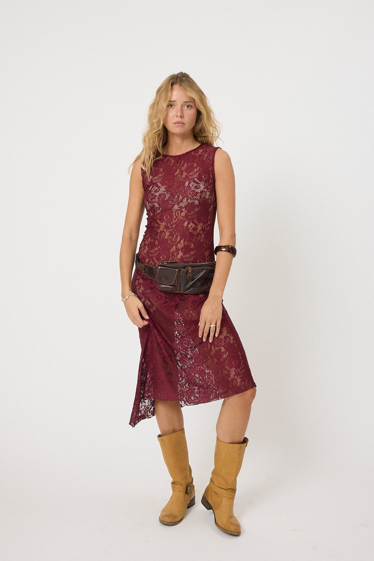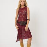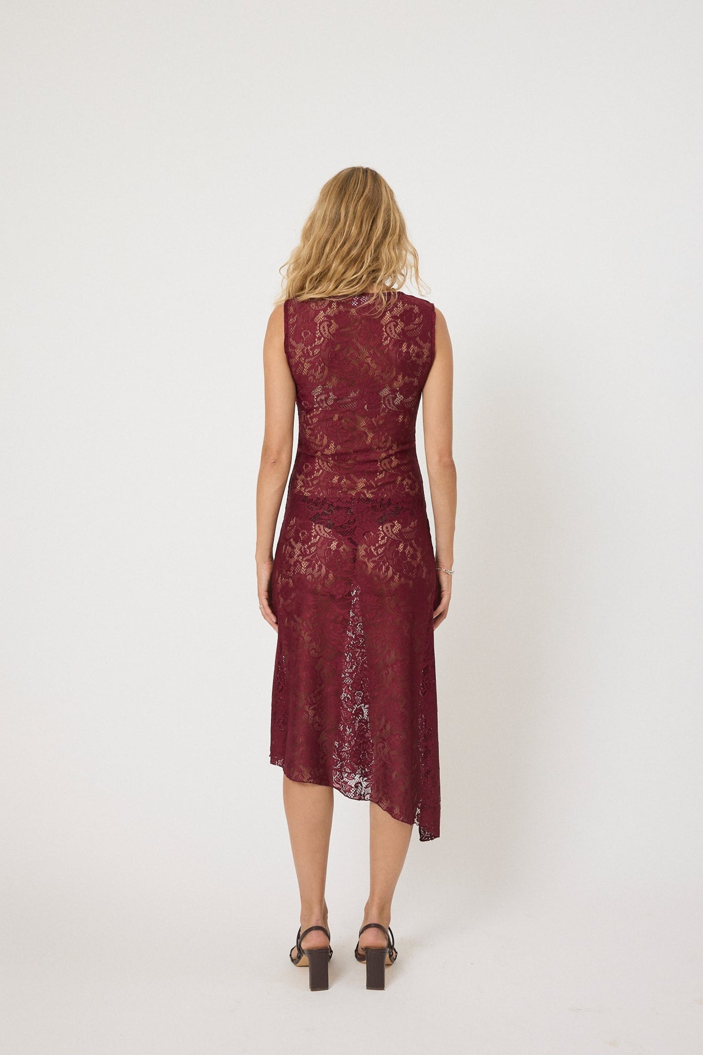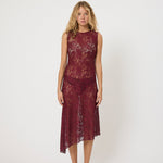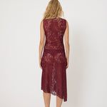 The Dakota dress is a statement piece from the RODEO collection, crafted in beautiful burgundy lace with an asymmetrical silhouette.