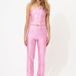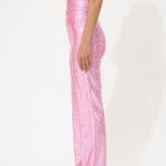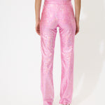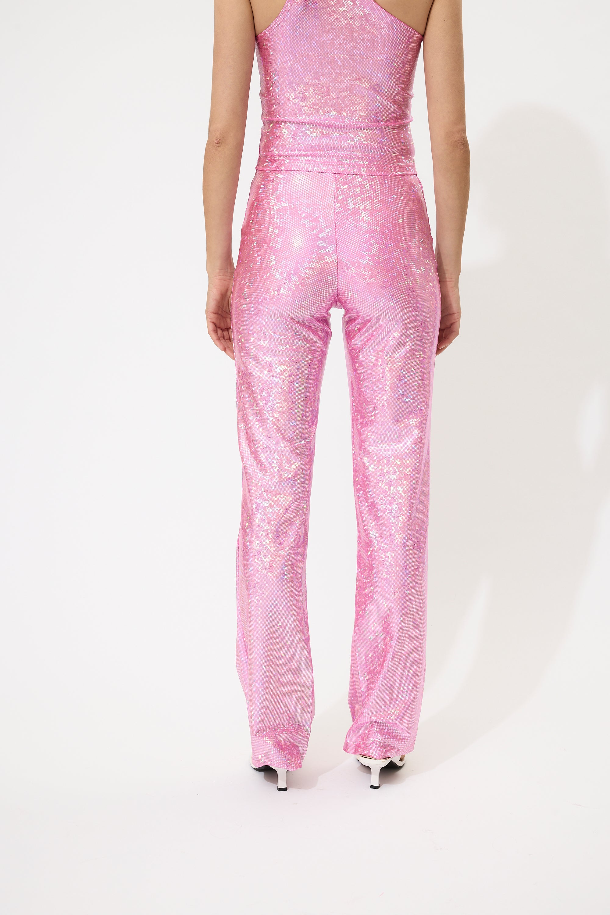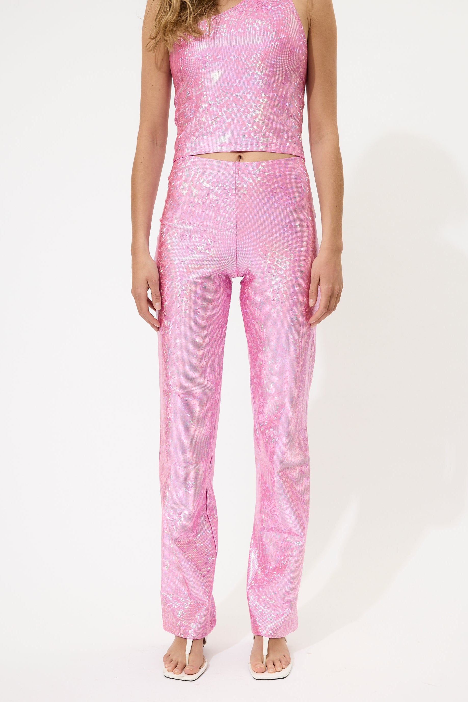 This is our signature pants with an elastic waist in the color pink. The pants are slim fitted around your buttom to make sure it looks good and with a straight leg fit.