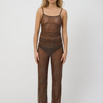 The Tawny cami top warms the season with rich brown tones and subtle shimmer. Minimal in cut, yet bold in feeling, an understated statement